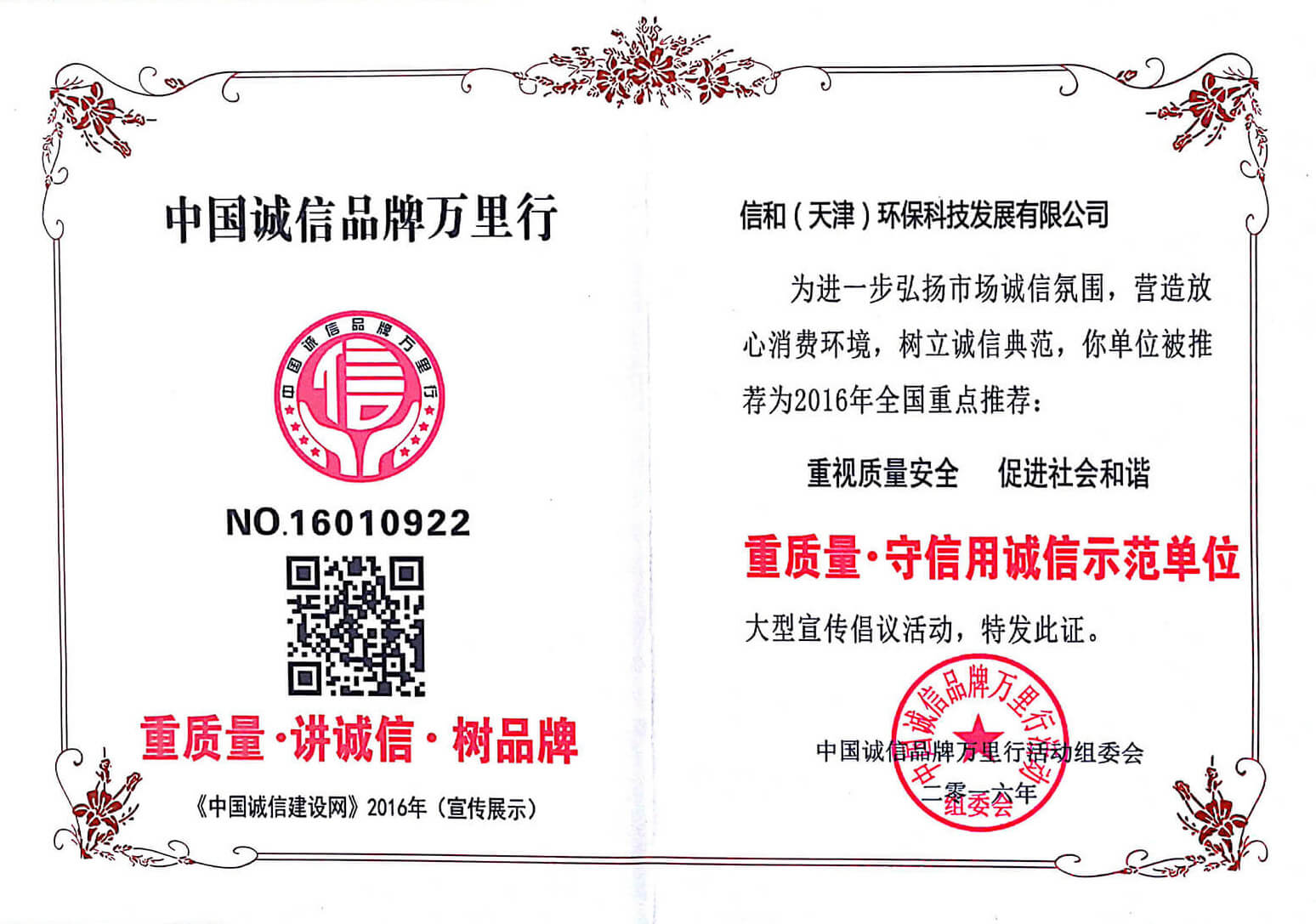 全國質(zhì)量、誠信創(chuàng)建單位