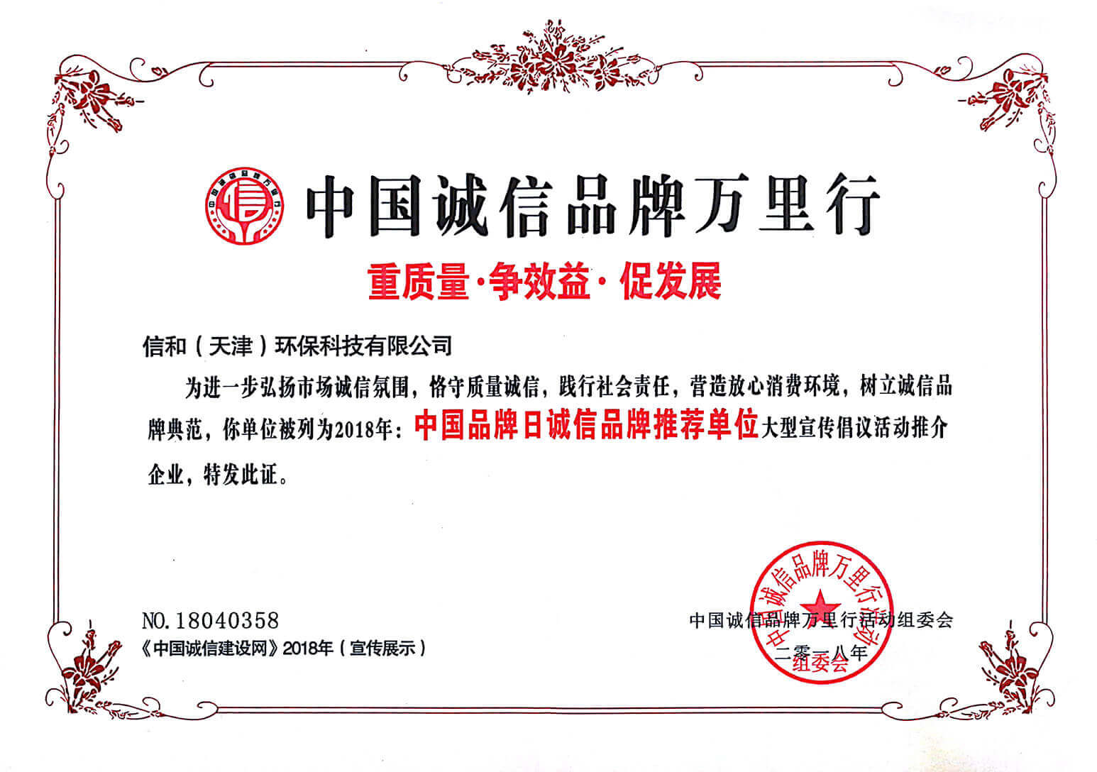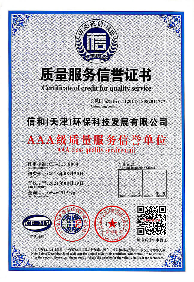 質(zhì)量服務信譽證書