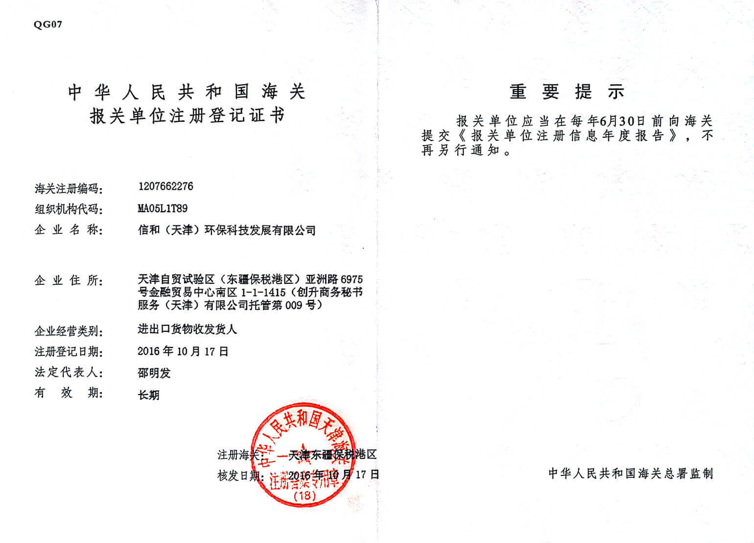信和(天津)環(huán)保科技發(fā)展有限公司